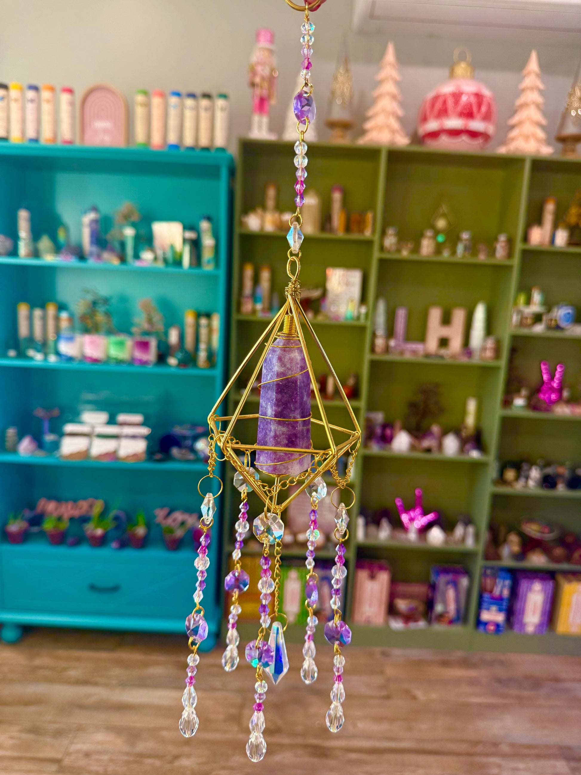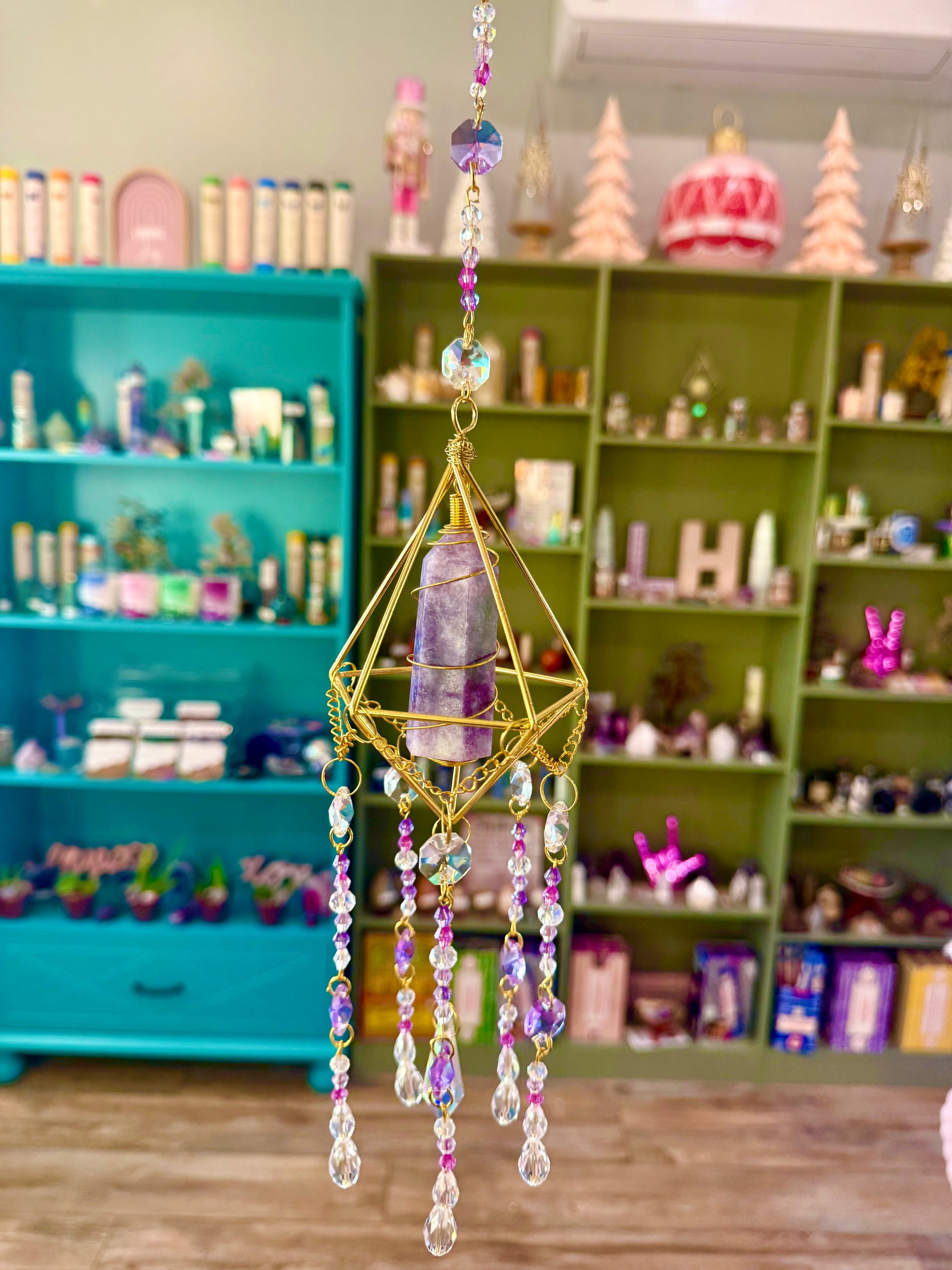 Our Lepidolite suncatchers are perfect for anyone seeking to invite calm energy and emotional balance into their space, while enjoying the radiant beauty of handcrafted artistry.