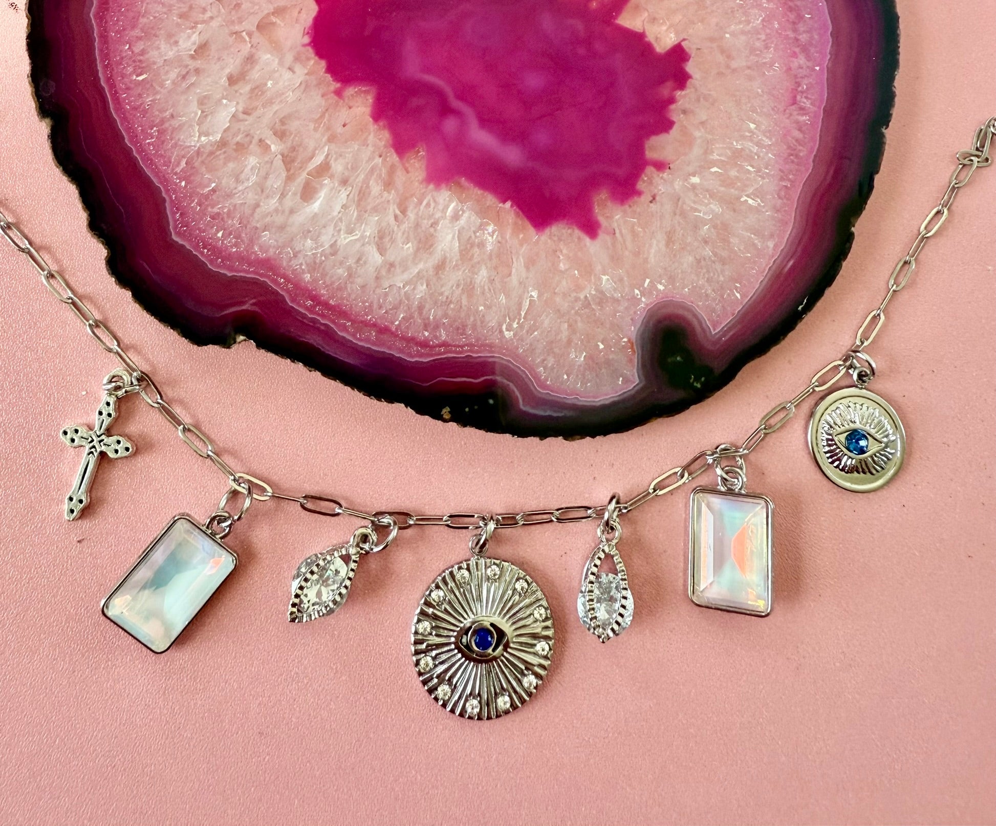 sterling silver cross and evil eye